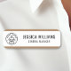 Dieses individuell anpassbare braune Namensschild ist eine berufliche und vielseitige Wahl für jeden Arbeitsplatz. Es bietet ein übersichtliches Layout mit Platz für Ihren Namen, Titel und Ihr Firmenlogo.