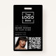Ein modernes personalisiertes Business Abzeichen mit Business Logo, QR Code und Details. Personalisieren Sie mit Ihrem Logo, QR-Code und Details, um Ihr eigenes elegantes, schwarzes Business-Abzeichen zu erstellen. Mit einem eigenen Farbhintergrund oder Schriftart können Sie noch weiter individualisieren.
