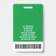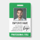 Weiße und grüne Akzente - Ein einfaches Business-Design, das Ihre Bürologos und Ihren Mitarbeiternamen unterstreicht. Dieses herkömmliche Bürodesign beinhaltet auch eine Abzeichen-ID, ein Ablaufdatum und eine Krankenschwester oder einen anderen Titel. BACK: Sie können einen Scan-Bar-Code auf der Rückseite und einen Ort hinzufügen, um Informationen hinzuzufügen, wenn das Abzeichen verloren ist. Sie können auch die Hintergrundfarbe ändern. Klicken Sie auf die Schaltfläche Anpassen und wählen Sie eine Hintergrundfarbe für die Vorder- und Rückseite aus.
