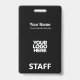 Dieses Abzeichen mit beruflichem Verwaltungsnamen ohne Foto und großes Firmenlogo ist einfach zu personalisieren. Ein einfaches Business-Design, die Vorder- und Rückseite bedruckt das Gleiche in coolen Schwarz-Weiß-Farbtönen, die in Vorder- und Rückengrößen vollständig anpassbar sind, serifenlose, einfache und moderne Schriftart und ein berufliches und klares Aussehen, perfekt für kleine Geschäftsangestellte, Chef, Gäste. Diese Business-ID-Abzeichen sind mit Lanyard, Metallklammer oder mit Retraktierbar erhältlich. Keine Mindestbestellung, aber rett Geld und genießen Sie Zazzle Rabatte bei mehreren Bestellungen!