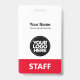 Dieses Abzeichen mit beruflichem Verwaltungsnamen ohne Foto und großes Firmenlogo ist einfach zu personalisieren. Ein einfaches Business-Design, vorne und hinten bedruckt das Gleiche in Augenbrauen, rot und weiß, vollständig anpassbar in Vorder- und Rücken-Größen, serifenlose, einfache und moderne Schriftart und ein berufliches und klares Aussehen, perfekt für kleine Geschäftsangestellte, Chef, Gäste. Diese Business-ID-Abzeichen sind mit Lanyard, Metallklammer oder mit Retraktierbar erhältlich. Keine Mindestbestellung, aber rett Geld und genießen Sie Zazzle Rabatte bei mehreren Bestellungen!