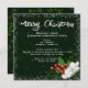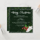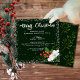 Diese elegante Firma/Angestellte Frohe Weihnachten Party Einladung auf Dunkelgrün zeigt ein handgeschriebenes Drehbuch Frohe Weihnachten auf weißem, wunderschönem Gold umrissene weiße Blume, rote Beeren und grüne Botanicals. Feiner Schneerahmen und zufällige Schneeflocken verleihen dieser eleganten Weihnachtseinladung eine winterliche Touch. Frohe Weihnachten!