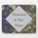 Sie möchten einen neuen Mitarbeiter in Ihrem Unternehmen oder Ihrer Abteilung willkommen heißen? Dieses Mousepad zeichnet sich durch ein abstraktes und elegantes und berufliches, wirbelfarbenes und goldenes Muster aus. Ein solider hellblauer und goldener Diamant ist zentriert und bietet den Hintergrund für Ihre beruflichen Begrüßungsworte für Ihren neuesten Mitarbeiter. "Willkommen in unserem Team" kann leicht an Ihre Bedürfnisse angepasst werden.
