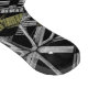 Ein kompliziertes Muster grauer Kreuze und Kreise, die sich auf einem schwarzen Hintergrund mit einem kleinen Farbtupfer verbinden.