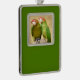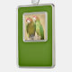 Mitred Parakeet auf der Holzpfeife Postkarte Rahmen-Ornament Silber