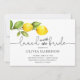 Dieses Mittagessen mit der Bride Bridal Dusche Einladung ist perfekt, um die Braut zu sein oder eine Braut, die bereits vergangen ist zu feiern. Mit Aquarelllemonen auf einem Zweig von Grüntönen mit blauem Polka-Punkt-Rückseite. Passen Sie Ihre Informationen an, damit die Braut sein kann.