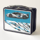 Diese Lunchbox wird mit einem Rennen Auto Kunstdruck gezeigt. Die Farbe des Lunch Box ist schwarz Passen Sie dieses Objekt an oder kaufen Sie, wie es ist. Börsenbild vecteezy.com