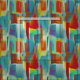 Ein abstrakter Stoff mit gedämpften Farben macht dieses Muster aus der Mitte des Jahrhunderts deutlich. Ideal für Wohngestaltung oder Kleidung.