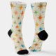 Dies ist ein elegantes, Mitte des Jahrhunderts modernes, farbenfrohes atomares Sternenexplosionsmuster in Retro-Farben wie Orange, Türkis, Braun, Grün auf hellem Creme-Hintergrund. Es sind großartig aussehende Socken für diejenigen, die den Mid-Mod-Stil lieben