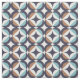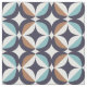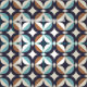 Dieses moderne Muster der Mitte des Jahrhunderts kennzeichnet die blauen und braunen Formen.