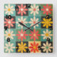 Mitte des Jahrhunderts Retro Daisy Muster Quadratische Wanduhr