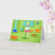 Diese Mitte- des Jahrhundertsmoderne Retro Hausfrau-Gruß-Karte hat Sie, Ihre Stränge der Perlen auszubrechen, um die weltlichstenaufgaben zu tun. Die vorderen Ausrüstungsbeschreibungen ein Limoner grüner Hintergrund mit der Silhouette eines Blaus, des Kegelkamins, des Grüns, des klassischen RohrfernsehSets (schließen Sie mit den Kaninchenohren) ab, des orange Aufenthaltsraumstuhls und des -schemels, des Blaus, der Sternexplosionuhr und des orange Ottoman mit den sich verjüngenden Beinen. Aber, das pièce de Résistance ist sicherlich die klassische Fernsehhausfrau, die ein poofy rosa Kleid mit einem Türkis und weißen Schürze- und Türkisschuhen trägt. Ihr blondes Haar ist tadellos flippy und ihre Hand hält eine Vakuumdüse. Selbstverständlich ist sie! Was sonst würde sie tun, wenn sie ihr Zuhause süßes Zuhause ein wenig nicht süßer machte? Das Innere ist leer, Ihre eigenen Gefühle zuzulassen.