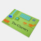 Diese kundengerechte Mitte- des Jahrhundertsmoderne Retro Tür-Matte hat Sie, Ihre Stränge der Perlen auszubrechen, um die weltlichstenaufgaben zu tun. Die Ausrüstungsbeschreibungen ein Limoner grüner Hintergrund mit der Silhouette eines Blaus, des Kegelkamins, des Grüns, des klassischen RohrfernsehSets (schließen Sie mit den Kaninchenohren) ab, des orange Aufenthaltsraumstuhls und des -schemels, des Blaus, der Sternexplosionuhr und des orange Ottoman mit den sich verjüngenden Beinen. Fertigen Sie mit einem Namen oder einem Sprichwort besonders an. Süßes Zuhause des Zuhause got gerade ein wenig süßeres!