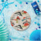 Jeder Tag kann eine Explosion von der Vergangenheit mit dieser Mitte des Jahrhundertsmodernen inspirierten Papierplatte sein. Die Ausrüstungsbeschreibungen eine Replik eines Vintagen beweglichen Gewebeatomarmusters. Der Hintergrund ist ecru mit den blauen, orange, grünen und schwarzen Kunstformen. Dieses ist die ideale Papierplatte für jede mögliche Gelegenheit mit einem modernen Flair der Mitte des Jahrhunderts!