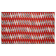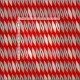 Gewebe in einem modernen Entwurf der Mitte des Jahrhunderts des abstrakten Blätter in den Schatten des hellen silbernen Graus/des Graus zum mittleren Grau, betont mit Graphitgrau und Tomaterot, auf einem dunklen chinesischen roten Hintergrund