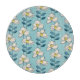 Dieses moderne Muster der Mitte des Jahrhunderts kennzeichnet ein blaues und gelbes Blumenmuster.