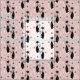 Für den Katzenliebhaber, Retro-Enthusiast, meine originelle Vektorgrafik von schwarzen Katzen, Sternexplosionen & Diamanten im atomaren Stil der Mitte des Jahrhunderts, in Schwarz und Elfenbein, auf einem warmen rosa Hintergrund.