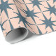 Moderne Atomstars-Muster aus dem Mittelalter in Aquamarinem Blau und Pink-Pink-Wrapping Paper aus Stahl. Elegantes, geschmackvolles, elegantes, stilvolles, schlichtes Design mit einer modernen Retro-Sternexplosion im Zentrum der Mod mit Vintager modernistischer Ästhetik. Von Kierkegaard Design Studio.