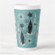 Mittelalter bedeutet Retro-Atomkatzen auf blau Milchtasse
