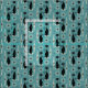Für die Katzenliebhaber, Retro-Enthusiast, meine originale Vektorgrafik von schwarzen Katzen, Sternexplosionen & Diamanten im atomaren Stil des Mitteljahrhunderts, in Schwarz und Grau, auf einem kadettenblauen Hintergrund.