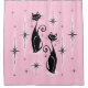 Für die Katze liebende Retro-Enthusiast, meine originale Vektorgrafik der schlanken schwarzen Katzen, Sternexplosionen, & Diamanten im atomaren Stil Mitte des Jahrhunderts, in schwarz und blassrosa auf einem coolen rosa Hintergrund, mit simuliertem Stoffkorn.