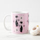 Für die Katzenliebhaber, Retro-Enthusiast, meine originale Vektorgrafik von schwarzen Katzen, Sternexplosionen & Diamanten im atomaren Stil des Mitteljahrhunderts, in Schwarz, Elfenbein und Rosa, auf einem coolen rosa Hintergrund, mit einem simulierten Stoffkorn.