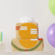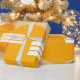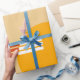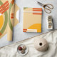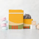 Dieses Verpackungspapier hat ein modernes abstraktes Design eines goldenen Kreises in einem grünen Kreis mit orangen und weißen Streifen.