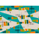 Mitte des Jahrhunderts Moderne atomare Gewebe inspiriert in aquamarin, orange und grün.
