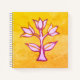 Handdoodled mittelalterliche Tulpen für ein spielerisches, aber minimalistisches Design. Die Rückseite weist ein lila Wiederholmuster auf.