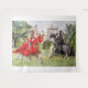 Dieser farbenfrohe Wandteppich zeigt ein improvisiertes Set vor der Burgkulisse. Der rote Ritter und der schwarze Ritter kämpfen für die Hand von M’lady.