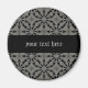 Cooler Magnet mit einem mittelalterlichen, gotischen Kaleidoskop-Muster auf ihm in Schwarz und Stein. Sowohl der Text als auch der schwarze Streifen sind anpassbar. Klicken Sie auf den Knopf "Anpassen", um die Größe eines Schriftartes zu ändern oder auf den Text oder den Streifen zu klicken, um die Optionen zu öffnen. Ideal für Ihren Kühlschrank oder Schließfach.