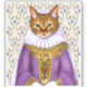 Aufkleber in einem Portrait einer Ingwerkatze, verkleidet als Adelige, mittelalterliche Katze, in einem lila, kunstvoll getrimmten Kleid und einem Schleier