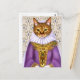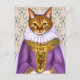 Postkarte in einem Portrait einer Ingwerkatze, verkleidet als Adelskatze, mittelalterlich, in einem lila, kunstvoll getrimmten Kleid und einem Schleier
