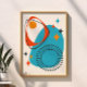 Mittelalterliche moderne Atomblau-Rot-Orange Abstr Poster