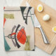 Mit diesem modernen, inspirierten Küchentuch aus der Mitte des Jahrhunderts kann jeder Tag eine Explosion aus der Vergangenheit sein. Das Design zeichnet sich durch eine Nachbildung eines Vintagen atomaren mobilen Stoffmusters aus. Der Hintergrund ist mit blauen, orangefarbenen, grünen und schwarzen modernen Kunstformen verziert. Dies ist das ideale Küchentücher für Apartments, Zuhause oder RVs mit Vintagem Ambiente.