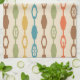 Eine abstrakte Kunstkunst im Stil der 50er Jahre mit geometrischen Formen von Vertikalketten und Hexagonen. Die perfekte Geschenkidee für jeden, der die Retro-Kitschkunst des 20. Jahrhunderts Liebe. Helle Vintage Braun-, Gelb-, Grün-, Orange- und Blautöne.
