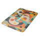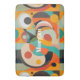 Moderne Malerei aus dem Mittelalter in verschiedenen geometrischen Formen in Rot, aquamarin, Orange, Schwarz und Grün mit fett weißem Namen oder Monogramm.