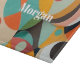 Moderne Malerei aus dem Mittelalter in verschiedenen geometrischen Formen in Rot, aquamarin, Orange, Schwarz und Grün mit fett weißem Namen oder Monogramm.