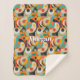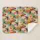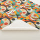 Moderne Malerei aus dem Mittelalter in verschiedenen geometrischen Formen in Rot, aquamarin, Orange, Schwarz und Grün mit fett weißem Namen oder Monogramm.