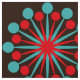 Diese Stoffe sind eine wunderbare Koordinate meiner anderen Dekogegenstände Rot und Türkis und zeugen von coolen Retro-Motiven aus der Mitte des Jahrhunderts. Moderne Motive mit Sternexplosionen, die von Kreisen in türkisfarbenen und lebhaften roten Sets umrahmt werden, und die auf einen dunkelbraunen Hintergrund abgestimmt sind, der leicht an den Anzug Ihres Stils angepasst werden kann.