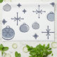 Dieses inspirierte Kunstmuster aus den 1950er Jahren hat Weihnachtsschmuck und Sputnik Sternexplosion Schneeflocken Vintag gestylt, indem man seinen eigenen Namen hinzufügt. Silberschattierungen vor weißem Hintergrund. Weihnachten Winterurlaub Spaß!