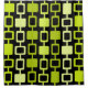 Ein einfaches, minimalistisches Muster, das durch die abstrakte Kunst der 1950er Jahre inspiriert wurde, mit Säulen aus abgerundeten Quadraten in Gelb-Grün, mit schwarzem Hintergrund.