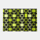 Ein einfaches, minimalistisches Muster, das durch die abstrakte Kunst der 1950er Jahre inspiriert wurde, mit Säulen aus abgerundeten Quadraten in Gelb-Grün, mit schwarzem Hintergrund.