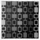 Ein schlichtes minimalistisches Muster, das durch die abstrakte Kunst der 1950er Jahre inspiriert wurde, mit Säulen von abgerundeten Quadraten in Silber und Grau, mit schwarzem Hintergrund.