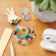 Moderne Malerei aus dem Mittelalter in verschiedenen geometrischen Formen in Rot, aquamarin, Orange, Schwarz und Grün mit fett weißem Monogramm oder Namen.