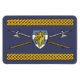 Späte mittelalterliche Poleäxe werden hinter einem hitzeförmigen Schild überquert, das in diesem originalen Design von Richard H. Fay einen heraldischen Löwen trägt.