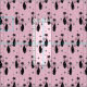 Für den Katzenliebhaber, meine originale Vektorgrafik von schwarzen Katzen, Sternexplosionen & Diamanten im atomaren Stil der Mitte des Jahrhunderts, in schwarz und blassrosa auf coolem rosa Hintergrund, mit simuliertem Stoffkorn.