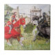 Diese Keramik Kachel zeigt meine Aquarellmalerei von zwei mittelalterlichen Rittern, die in einem improvisierten Witz, vor einem Schloss verlobt sind. Dieses Gemälde basiert auf einer echten Lebensfreude im Chilham Castle Kent England.