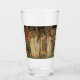 Glass Tumbler mit William Morris’ Tapisserie The Arming and Departure of the Knights (1891-4). Die Ritter des Runden Tisches sitzen auf ihren Pferden in einem Wald außerhalb eines Schlosses. Schöne Frauen geben den Rittern ihre Waffen und Schilde. Ein wunderbares Geschenk für Arthuriana-Liebhaber und Viktorianische Kunstsammler.