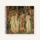 Notebook mit William Morris’ Wandteppichen The Arming and Departure of the Knights (1891-4). Die Ritter des Runden Tisches sitzen auf ihren Pferden in einem Wald außerhalb eines Schlosses. Schöne Frauen geben den Rittern ihre Waffen und Schilde. Ein wunderbares Geschenk für Arthuriana-Liebhaber und Viktorianische Kunstsammler.